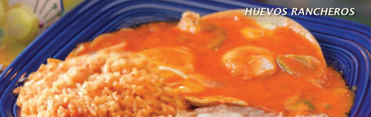 Two eggs sunny-side up. Covered in our homemade salsa ranchera. Served with rice and refried beans. Your choice of corn or flour tortillas – 10.99